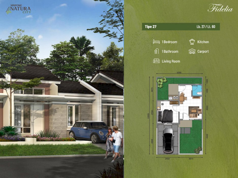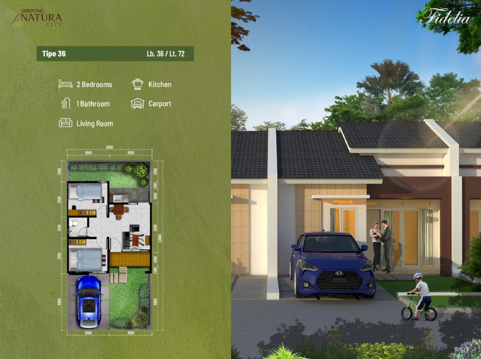Luas Tanah: 60 M2Luas Bangunan: 62 M2Kamar Tidur: 2Kamar Mandi: 2Tingkat: 2Carport: 2FEATURES & BENEFITSRUMAH 1 LANTAI1.Desain klasik modern yang tak lekang oleh waktu dan desain Scandinavian yang ikonik (tipe 39)2.Menggunakan material premium, membuat bangunan menjadi lebih kuat dan kokoh-Struktur beton bertulang-Dinding double full bata merah press3.Hingh ceiling, membuat sirkulasi udara dan pencahayaan alami menjadi lebih maksimal serta ruangan terlihat lebih lapang4.Fasad dengan aksen batu alam, terlihat elegan dan naturalRUMAH 2 LANTAI1.Desain klasik modern yang tak lekang oleh waktu 2.Menggunakan material premium, membuat bangunan menjadi lebih kuat dan kokoh-Pondasi struktur beton bertulang-Dinding double full bata merah press3.Fasad dengan aksen batu alam, terlihat elegan dan natural4.Taman belakang dapat dijadikan pengembangan5.Lantai 1 menggunakan konsep open plan, ruangan terlihat luas dan layout dapat dibuat lebih variative6.Kamar mandi lantai 2 mempunyai double aksen memudahkan untuk akses serasa memiliki kamar mandi tiap kamar7.Kamar utama memiliki balkon yang luas, dapat dijadikan ruang santai8.Double carport dapat menampung dua kendaraan roda 4 tanpa menganggu tetanggaUtilitas bawah tanah (listrik &jaringan fiber optic) lingkungan menjadi lebih rapi dan lapangSaluran air tertutup, lingkungan menjadi terlihat lebih bersih dan rapihInstalasi air bersih oleh PDAMCluster one gate system dengan CCTV membuat lingkungan mnejadi aman dan terjaga Lokasi cluster premium, bersebelahan dengan the signature. Dekat dengan jalan utama dan pusat kebugaranJalan utama ROW 11 dan jalan lingkungan ROW 8, memiliki kenyamanan dan aksesibilitas yang lebih baikJalan dengan perkerasan beton jalan menjadi lebih kuat dan biaya maintenance lebih murah.SPESIFIKASI FIDELIA1.PondasiBeton bertulang & struktur beton bertulang2.DindingDouble, bata merah finish plester aci + cat3.AtapRangka atap baja ringan + genteng beton4.Kusen pintu & jendelaAlumunium powder coating5.Daun pintu Pintu utama : solid engineering door finishing ducoPintu dalam : engineering honeycomb finishing ducointo kamar mandi : engineering honeycomb finishing duco acc kunci stainless steel6.Fasad depanFinishing cat kombinasi Keramik motif batu alam7.SantitaryAmerican standart / setara8.LantaiRuang utama : keramik / setaraKamar mandi : keramik / setara9.CarportRabat beton +kombinasi koral sikat10.Listrik Daya 1.300 kVA - rumah satu lantaiDaya 2.200 kVA - rumah dua lantai#rumahbaru #rumahterlaris #rumahterbaru #rumahdijual #rumahtangerangselatan #rumahserpong