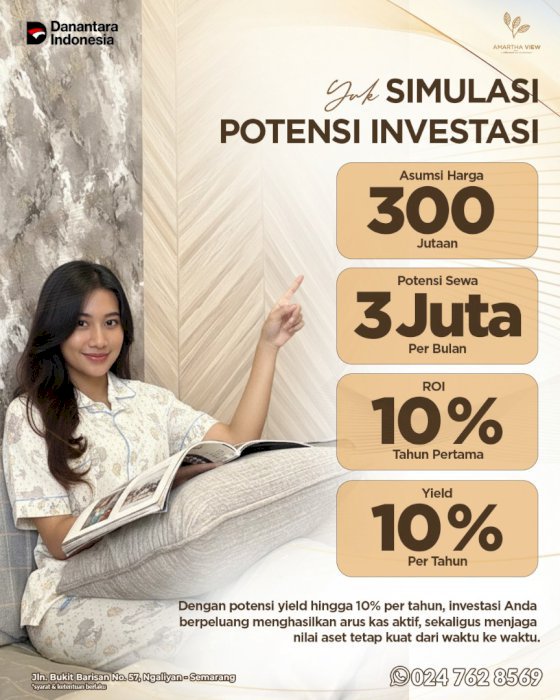 Luas Bangunan: 22 M2Kamar Tidur: 1Kamar Mandi: 1 Amartha View Resort Apartemen SemarangPrivate Living, Smart Living, Smart InvestHidup modern kini dapat kita miliki Tower 1 ( 1 BR, 1BR+, 2 BR, 2BR+) - tanpa/dengan furnish elegan, siap huni siap sewa Fasilitas premium: kolam renang, gym modern, jogging track, musola, commercial area , BBQ area Lokasi strategis: Ngaliyan Permata Puri Info promo menarik, cicilan, harga dsb WA 081932759835#AmarthaView#Semarang#HunianModern #ApartemenSiapHuni #InvestasiProperty#SewaApartemen#RekomendasiAprtemen#RekomendasiPenginapanSemarang#apartemenbaru #apartementerlaris #apartementerbaru #apartemendijual #apartemensemarang #apartemenngaliyan #apartemenbringin